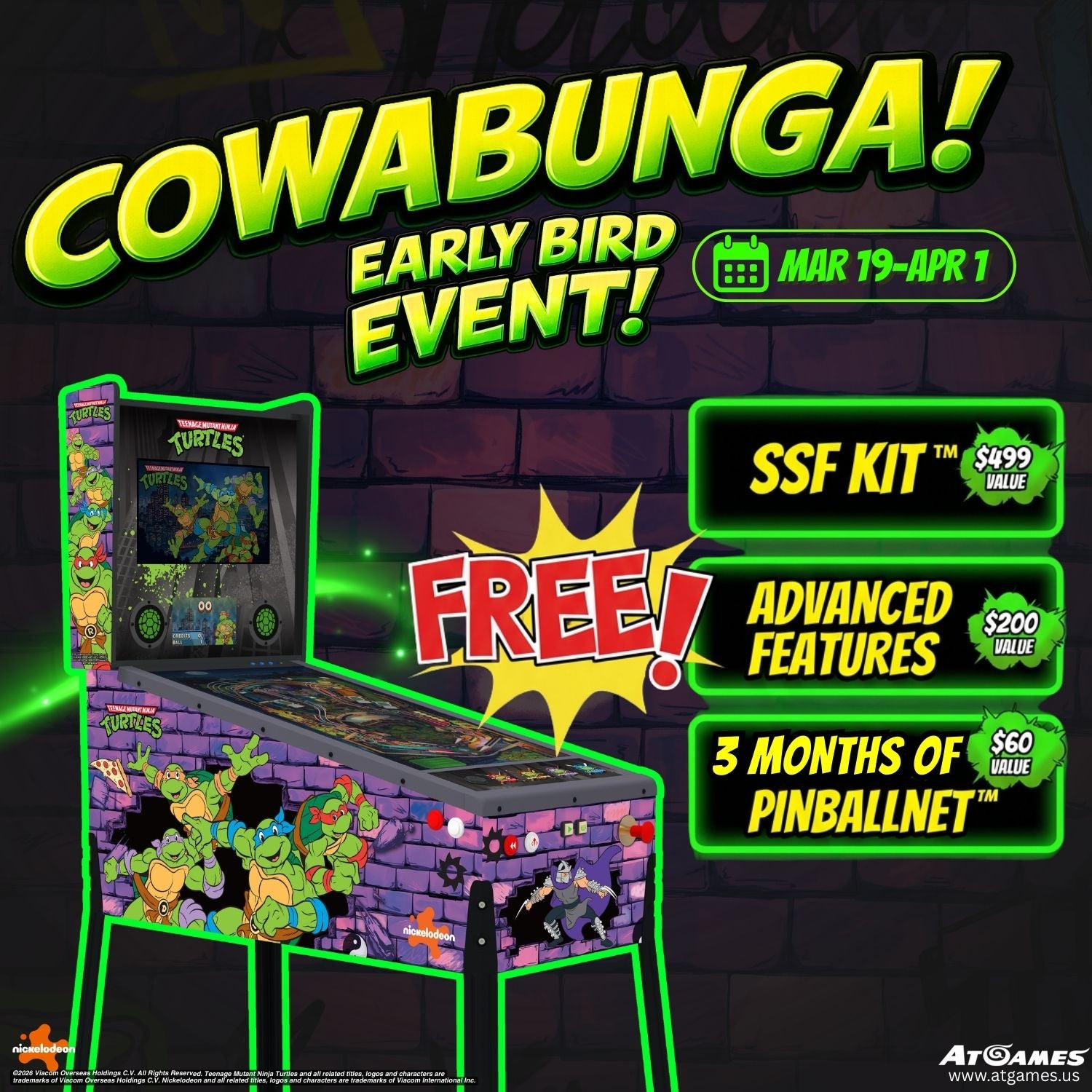 From March 19 to April 1, purchase the Legends Pinball HDP™ Teenage Mutant Ninja Turtles and receive: