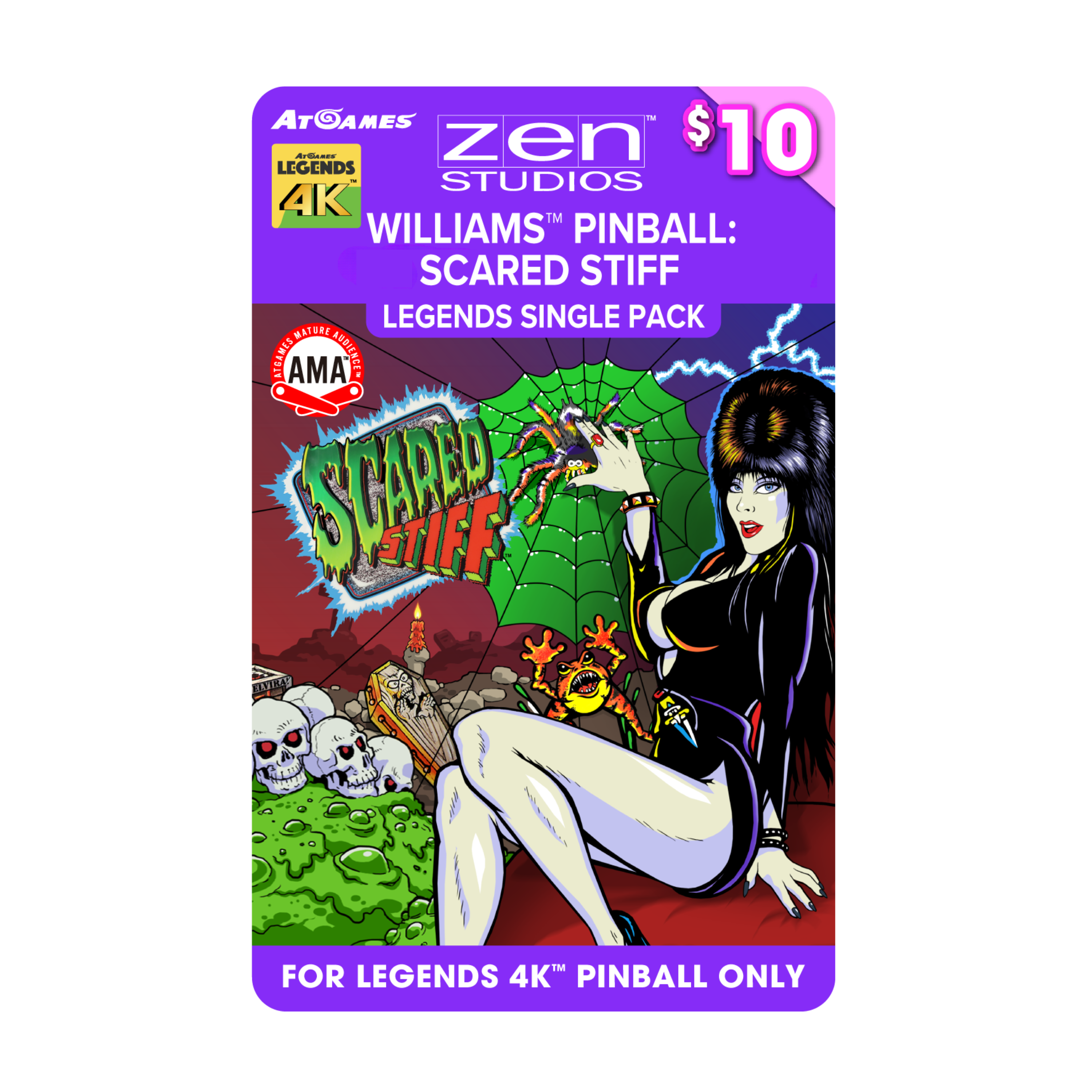 Elvira is back to rattle your bones in the classic Scared Stiff pinball table! Join the Mistress of the Dark herself on a quest to “raise the dead” by completing six spooky tales.