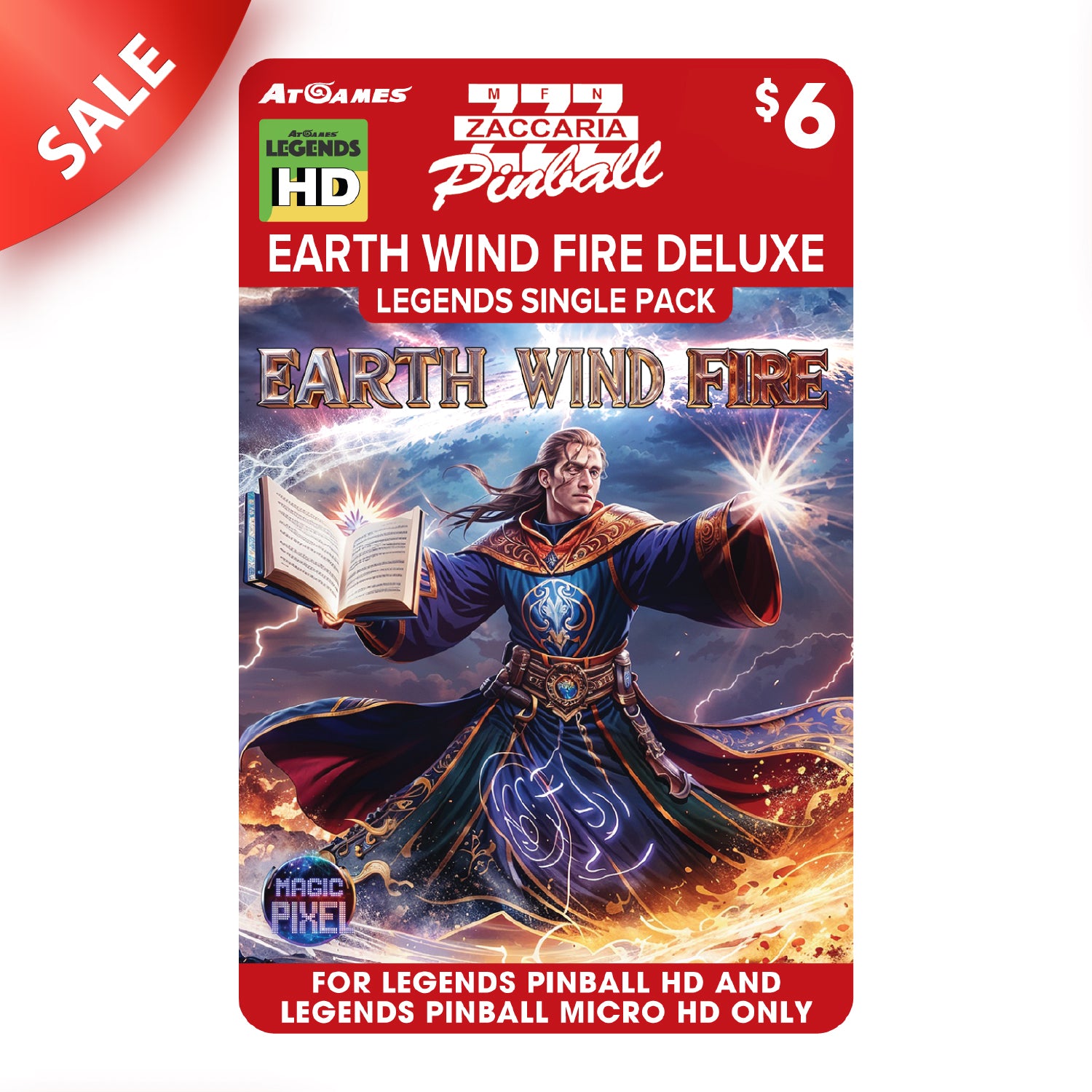 AtGames and Magic Pixel bring you Earth Wind Fire Deluxe, a modern take on the 1981 classic pinball table. Step into a world of elemental power and arcane wonder as you cast spells, unlock ancient secrets, and command the forces of earth, wind, and fire. In a realm of wizards, sorcerers, and mythical creatures, you’ll journey through five immersive gameplay modes and test your skill in five exciting mini-games. It’s a pinball adventure where power, precision, and imagination collide!