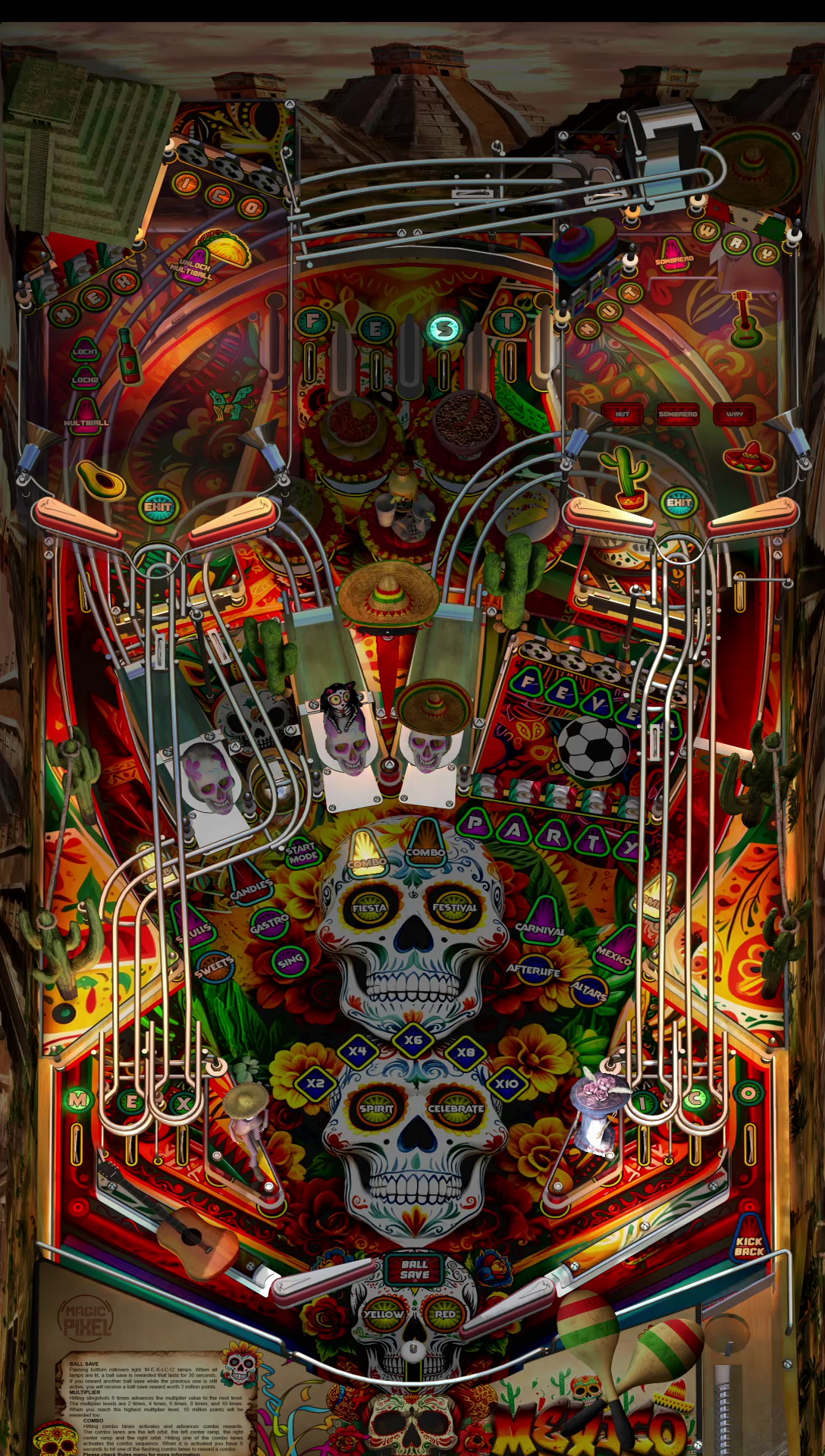 AtGames and Magic Pixel bring you Mexico Deluxe, a modernized version of the original Mexico table from 1986 that celebrates the vibrant culture and traditions of Mexico. From lively festivals to colorful skulls and candles, Mexico Deluxe brings a fresh visual upgrade and deeper gameplay to a nostalgic favorite. Light up the night with Mexico Mode, unleash Multiball, and chase high scores through exciting features like Combo, Kickback, and Multiplier. The table includes six unique modes—Yellow, Red, Spirit, Celebrate, Fiesta, and Festival—as well as three fun mini-games: Nut, Sombrero, and Way. Whether you're aiming for the Fest Bonus or diving into Carnival Mode, Mexico Deluxe delivers nonstop pinball action with a bold cultural flair.