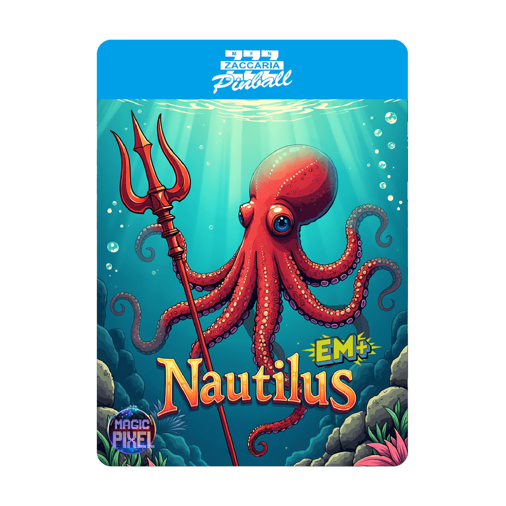 AtGames and Magic Pixel are pleased to present Nautilus EM+, a captivating digital pinball table with a deep-sea nautilus theme, imagined as a hybrid between classic electro-mechanical machines and early solid-state pinball. Inspired by the exploratory spirit of pinball tables from the 1960s and 1970s, this table emphasizes clear shots and layered bonus play. Players can activate ball save and rollover buttons while building multipliers and triggering ocean-driven bonuses like Shark Combo, Bumper Bonus, Dive Bonus, Fish Bonus, Anchor Down Bonus, and Octopus Bonus. Journey through five main objectives: Blue Wave, Coral Reef, Ocean Current, Treasure Map, and Submarine Bay as you descend into the depths and uncover underwater secrets. Nautilus EM+ blends retro pinball spirit with an immersive undersea adventure.